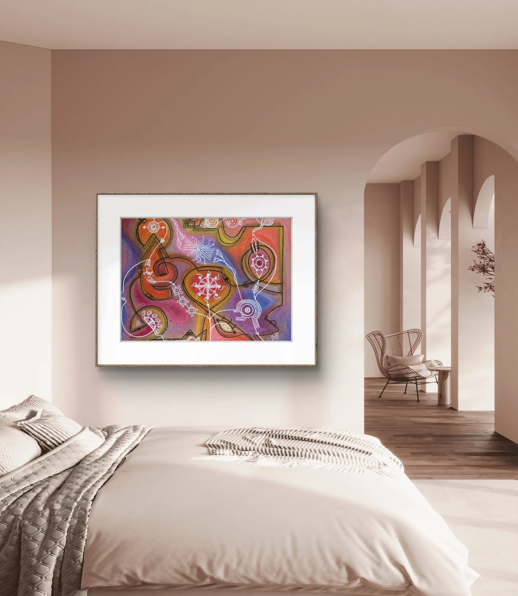 In luminous shades of pink, red, and violet, this artwork radiates warmth and vitality, embodying the sacred force of the sun as a source of direction, truth, and inner fire.
