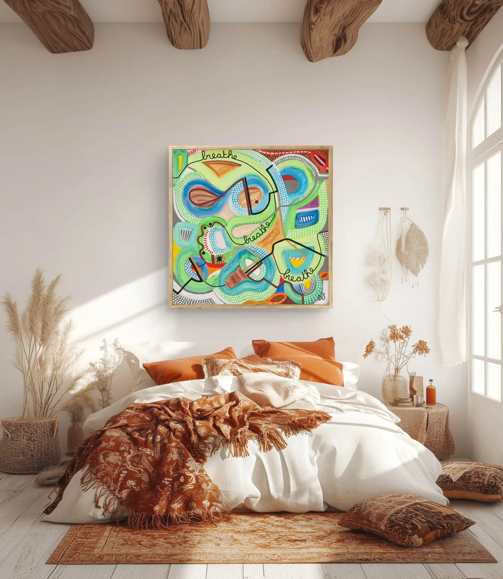 In many cultures, breath is sacred: it is spirit, life force, the bridge between body and soul. With its vibrant composition, Breathe captures this eternal truth — that every breath is an act of creation, a return to the present moment.