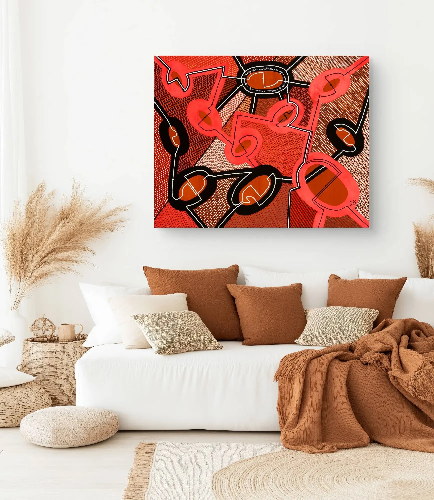 - Stretched on a solid 3.2 cm sustainable wooden frame, resistant to scratches, cracks, and warping.