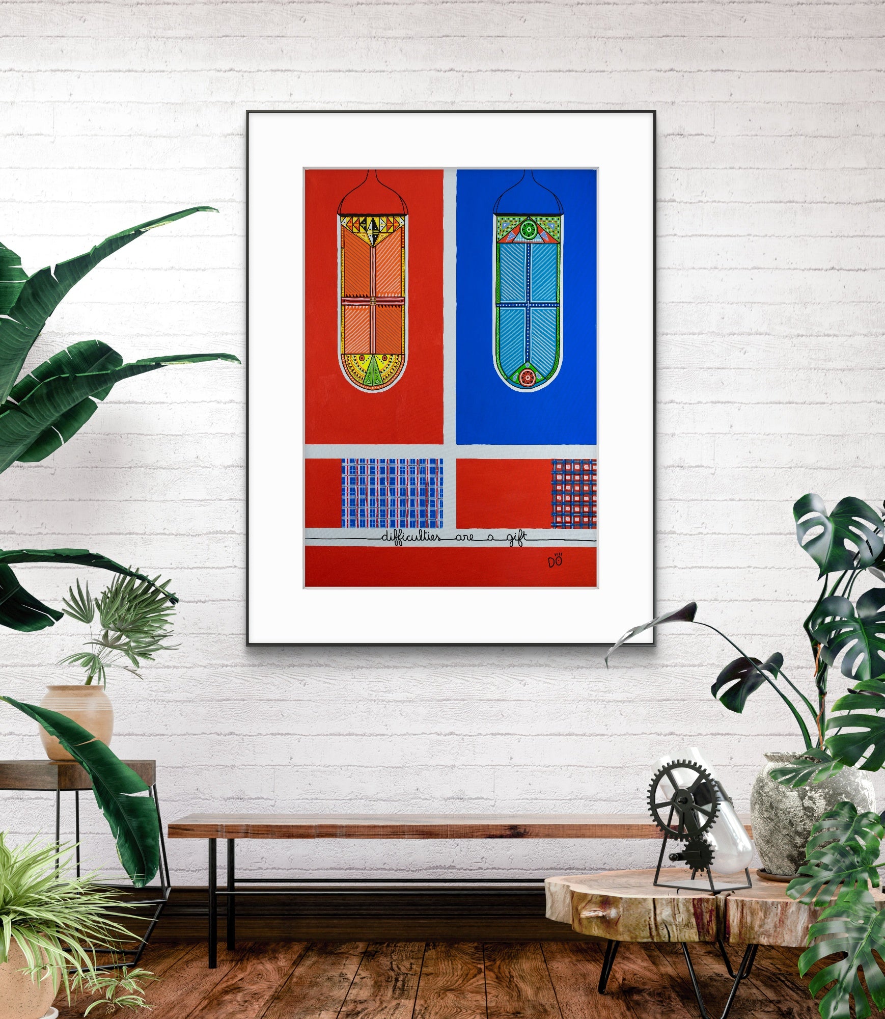 With its bold contrasts and cultural symbolism, this artwork is both a vibrant decorative piece and a mantra for resilience.