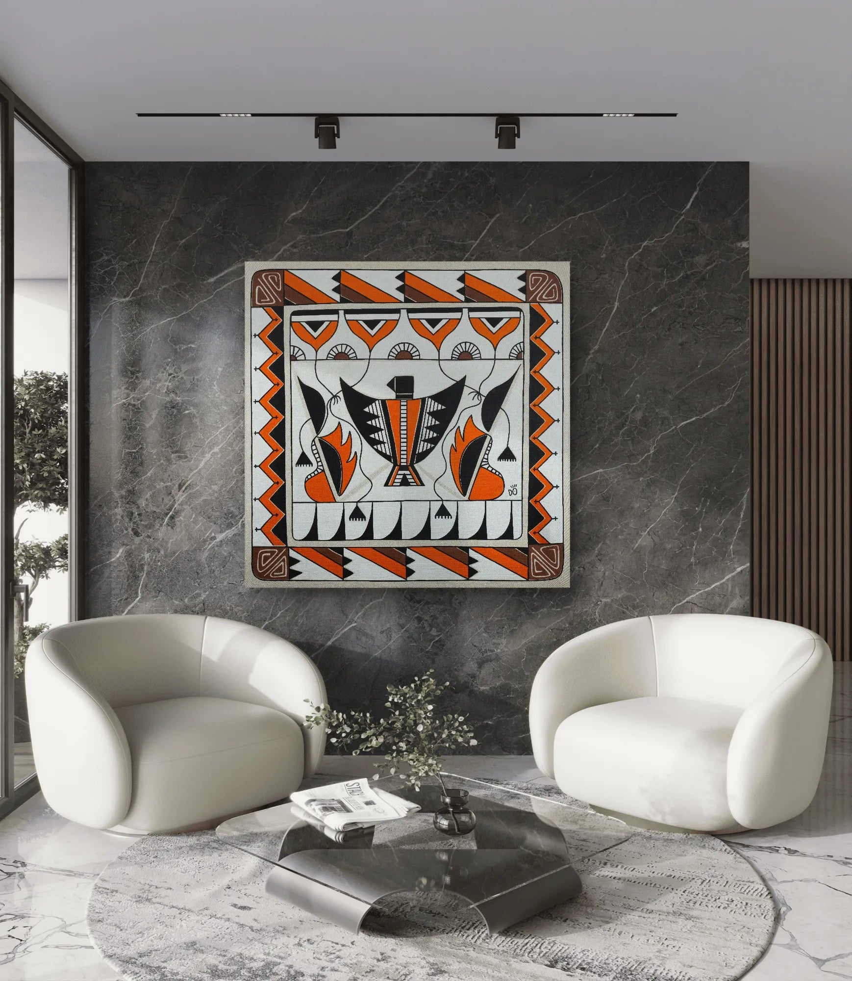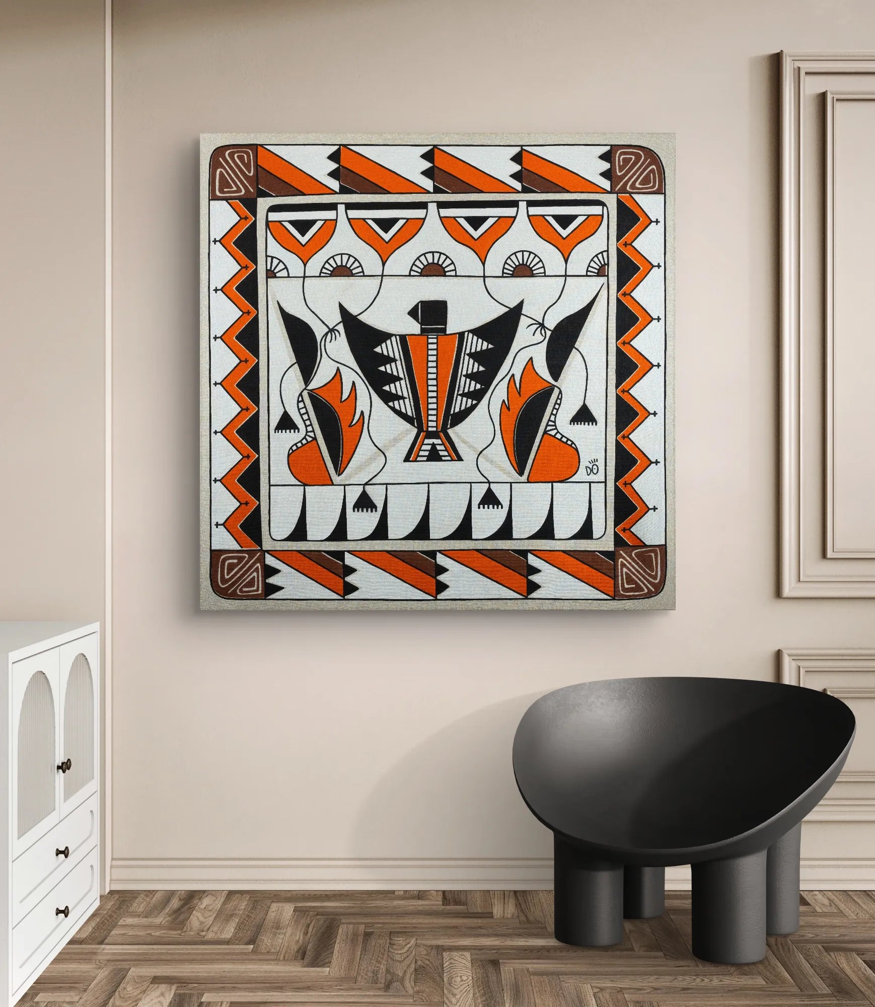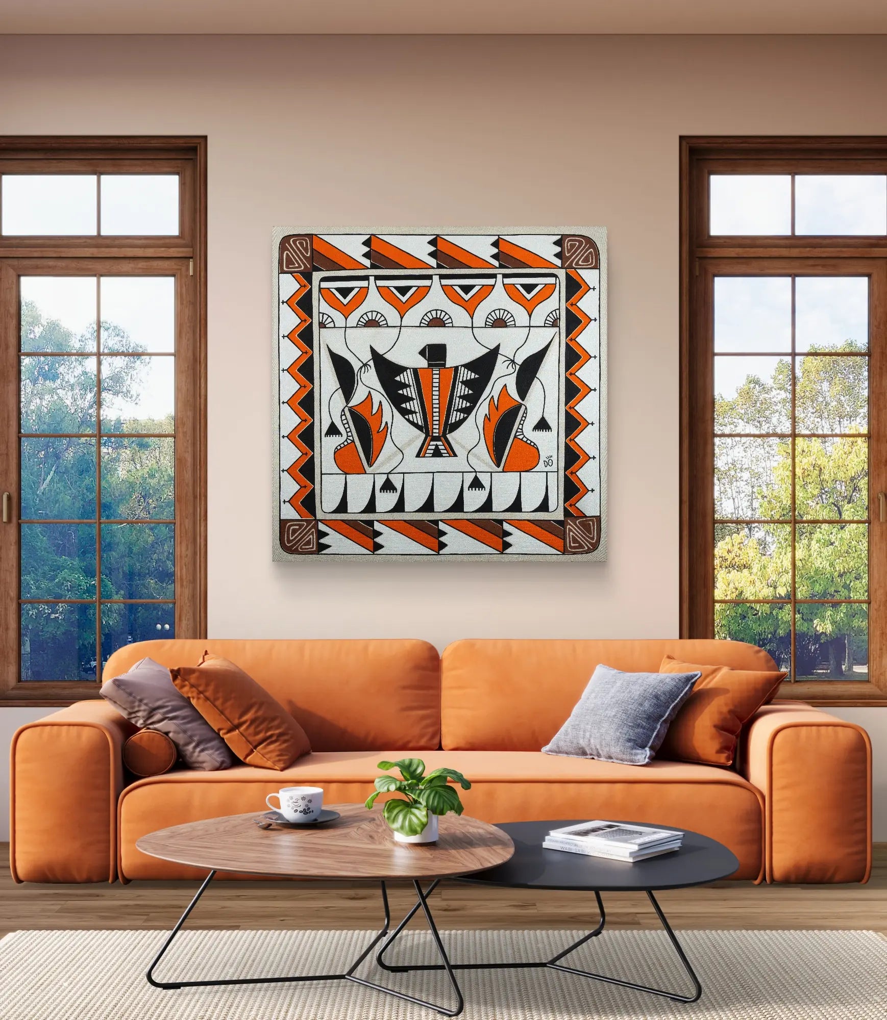 - Stretched on a solid 3.2 cm sustainable wooden frame, resistant to scratches, cracks, and warping.