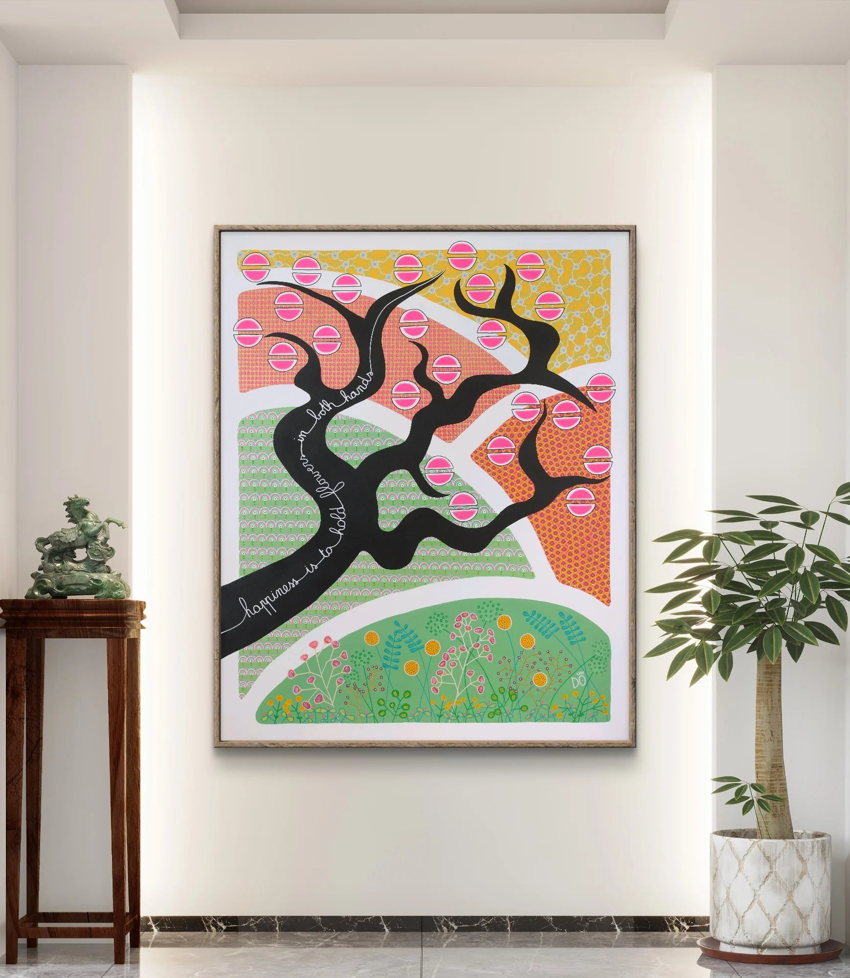 Happiness is to Hold Flowers in Both Hands is a visual meditation on ephemeral beauty, presence, and inner peace, inspired by the timeless wisdom of Japanese philosophy and the symbolism of the sakura, the cherry blossom.