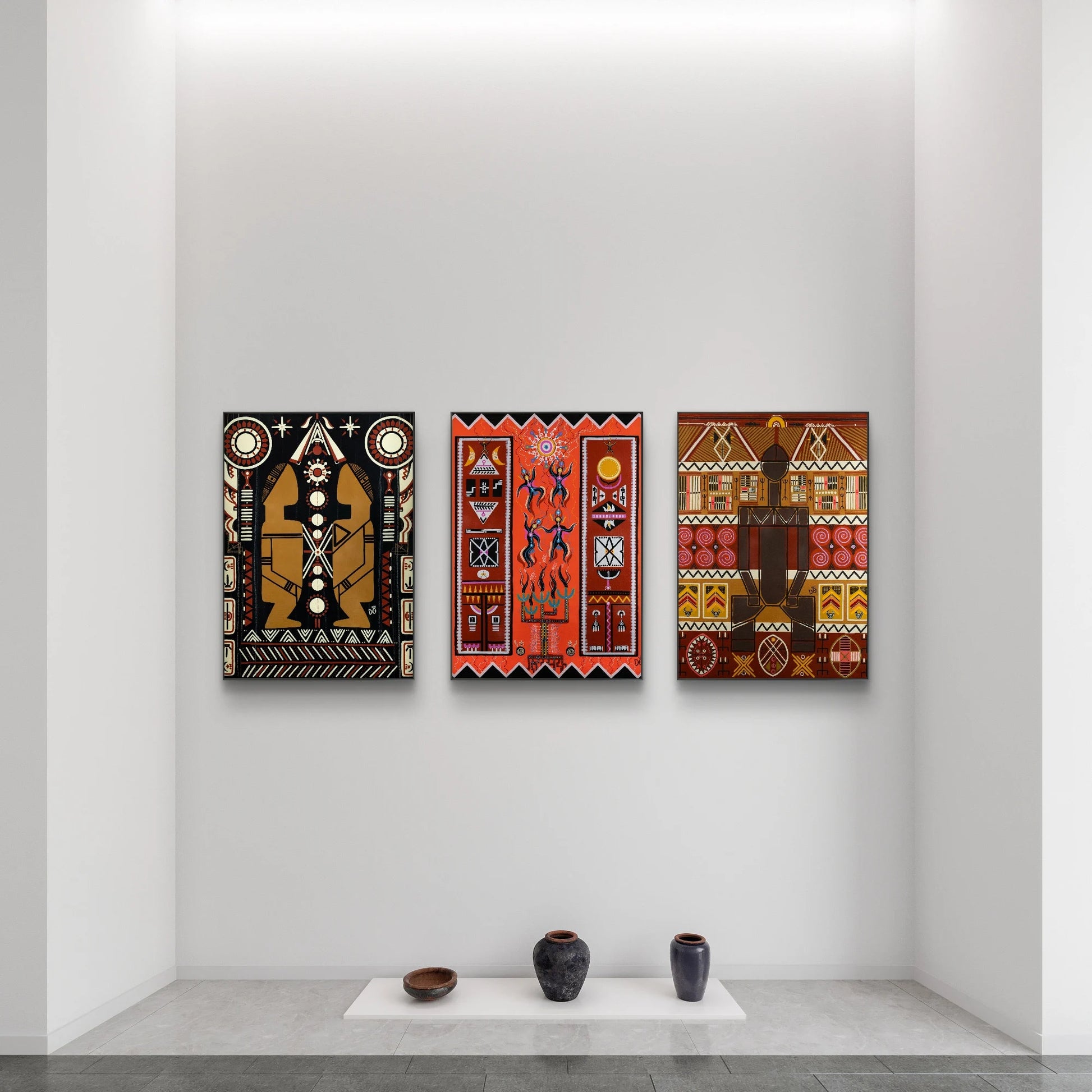 Harmony is a monumental tribute to balance, interconnection, and ancestral wisdom. Drawing inspiration from Dogon cosmology, this work evokes the primordial figures who embody both the visible and invisible dimensions of existence.