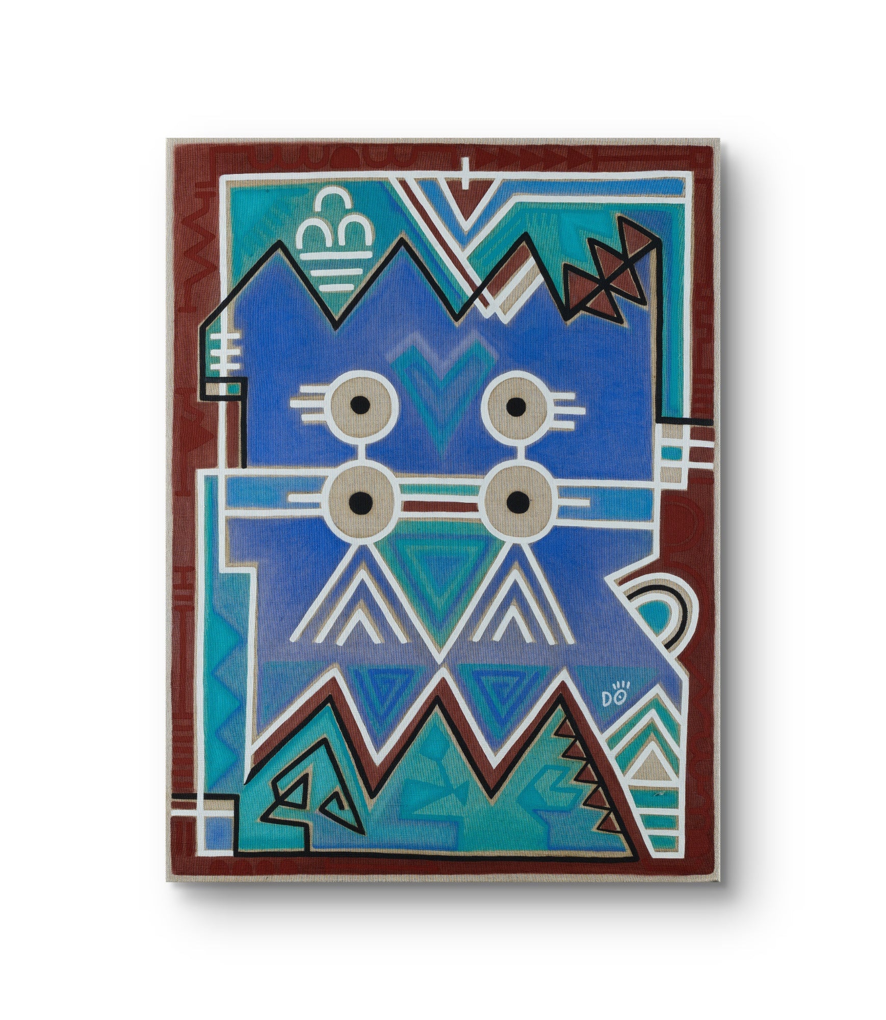 The geometric purity of the composition, combined with vibrant blues and earthy contrasts, evokes this flight toward light. Each line and symbol resonates with the idea of ascension: the courage to rise above shadows, the strength to face challenges, and the clarity to embrace truth.