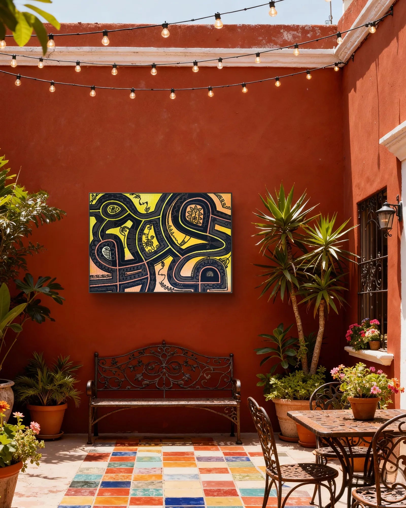 - Stretched on a solid 3.2 cm sustainable wooden frame, resistant to scratches, cracks, and warping.